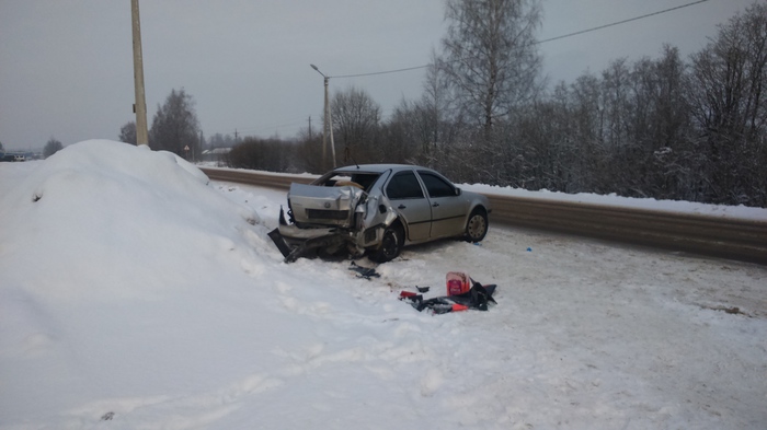 3 декабря около 13 часов на 0км+600м автодороги Колокша – Верхние Дворики – Струнино водитель автомашины Фольксваген Бора, молодой человек 23 лет, при движении со стороны города Струнино в сторону города Александрова не справившись с управлением транспортного средства совершил наезд на препятствие, опору линии электропередач. В результате ДТП двое пассажиров автомашины получили травмы.