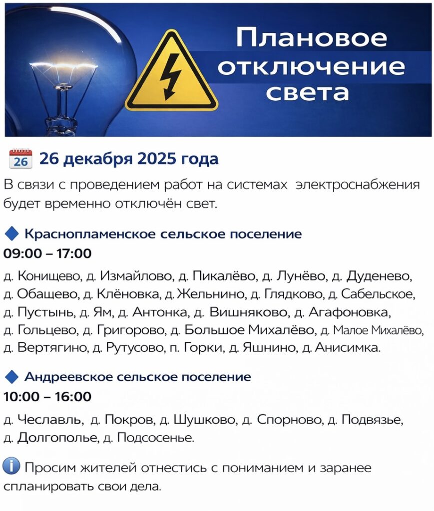 ⚠️ Внимание! Плановое отключение электроэнергии