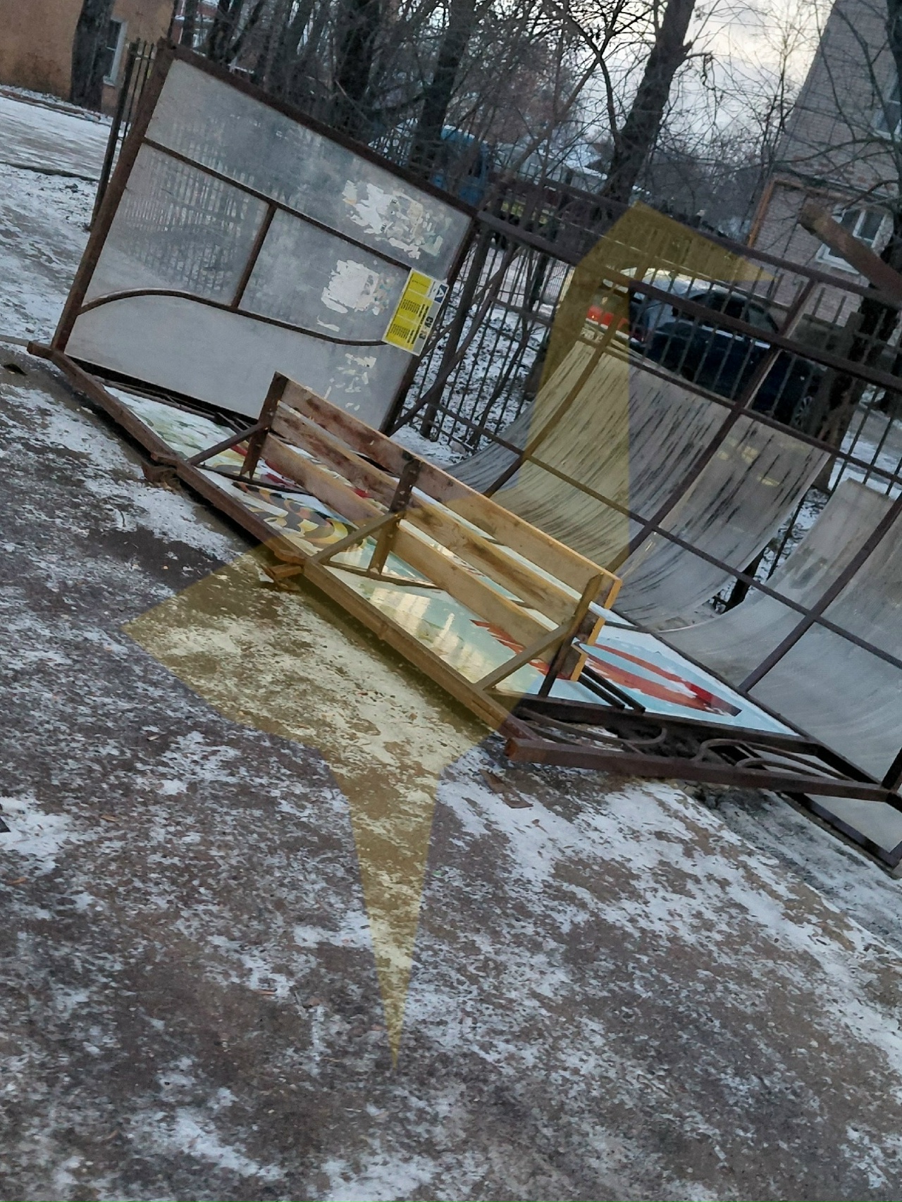 Автобусная остановка перевернулась на территории СМУ.
