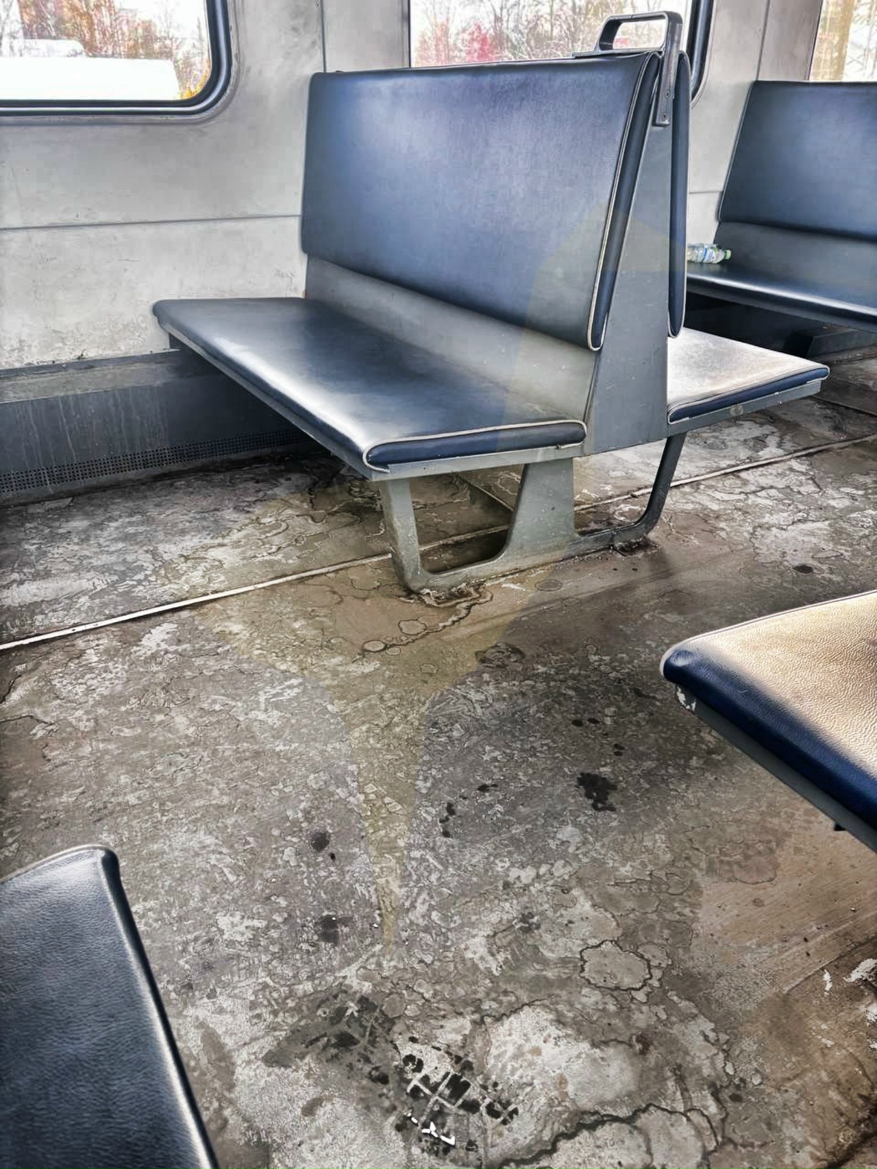 «А это обычный вагон — в просто ужаснейшем состоянии, весь в грязи», — сообщает другой пассажир, присылая фото.