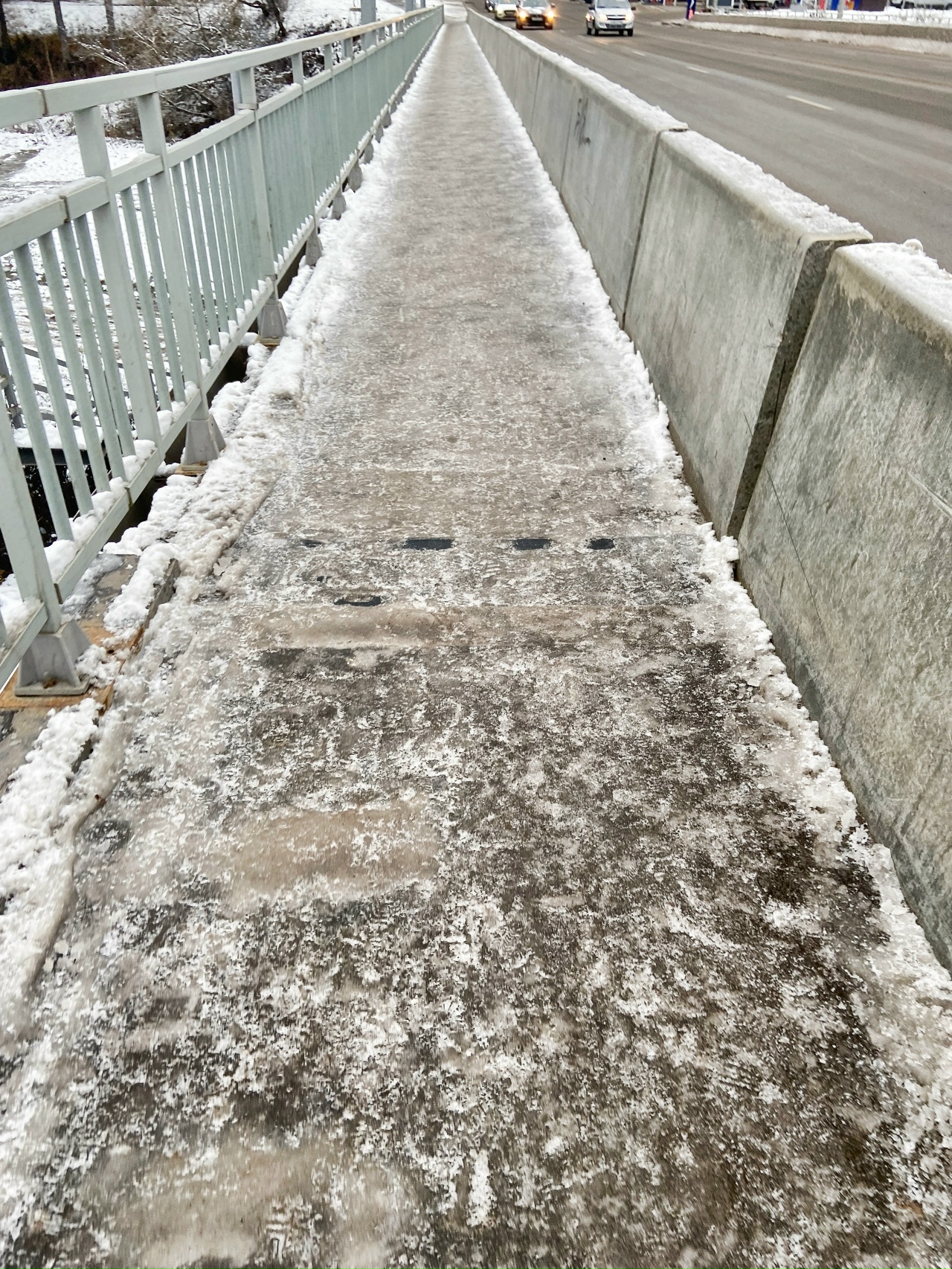 3 месяца назад 65 3 «Уважаемые коммунальные службы, посыпьте пешеходные дорожки на мосту в районе Гермеса. Сплошной лёд, так и под мост можно соскользнуть!»,– пишет читательница Поделиться