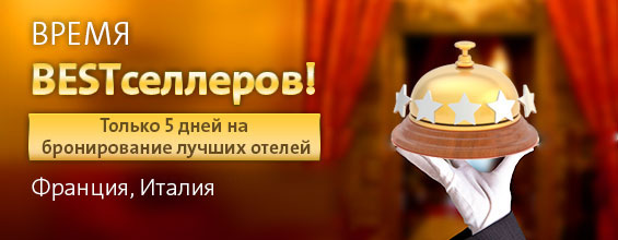 Акция «Время BESTселлеров» дарит Вам уникальную возможность: 5 дней на бронирование по очень выгодным ценам лучших и самых востребованных европейских отелей – ежегодных «хитов продаж» и новинок сезонов.