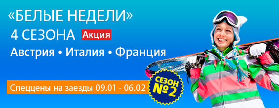 В течение двух недель будут доступны специальные тарифы на горнолыжные туры в Австрию, Францию и Италию с заездами в период с 09.01.2016 по 06.02.2016 с вылетами из Москвы и Краснодара.