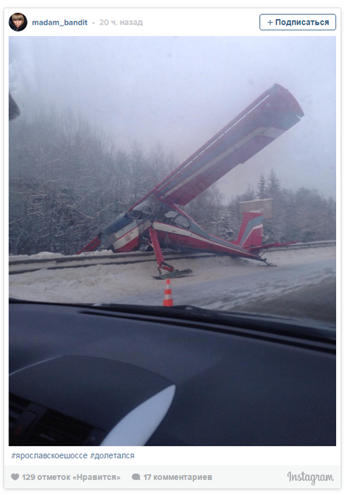 На Ярославском шоссе приземлился самолёт. pic.twitter.com/NqoQBoWUo6
