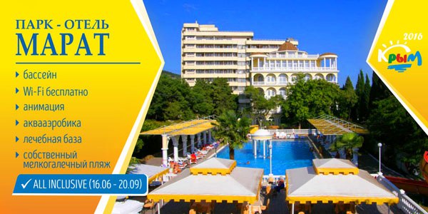Приглашаем отдохнуть в одном из лучших отелей Крыма! ✈ 28.05. Вылет из Москвы - Марат парк-отель 3* [Гаспра] - 7 ночей от 18399 руб. на человека, номер 2-мест., питание – ВВ