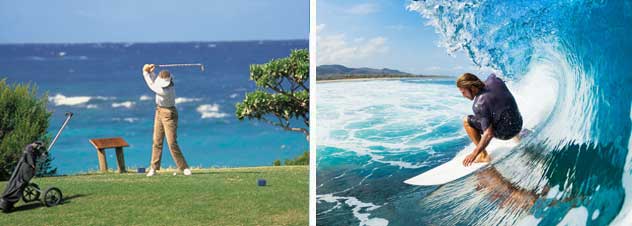 Маврикий - идеальное место для любителей гольфа. Гольф-поля на острове расположены очень близко к океану, так, что играя можно насладиться красотой голубой лагуны и свежим морским бризом. Кроме того, путешественники, увлекающиеся спортом, могут заняться серфингом, клаймбингом (подняться на легендарную гору Ле Морн Брабант) и попробовать легендарный zip-line – прокатиться на тросе по канату над каньоном и рекой. И конечно, не забывайте про дайвинг и снорклинг.