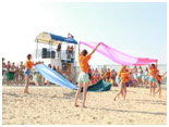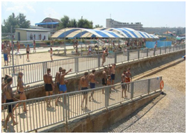 Собственный пляж лагеря находится всего в 50 метрах от места проживания: для безопасного и приятного отдыха у моря пляж оборудован теневыми навесами, душем, кабинками для переодевания, спасательной станцией.