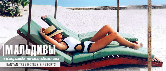 Здесь мудро решили не бороться со стереотипом, что на Мальдивах нечего делать, и просто возвели блаженное безделье в ранг искусства. "Искусство ничегонеделания" - так звучит слоган отелей Banyan Hotels&Resort на Мальдивах. Здесь можно полюбоваться бескрайним глубоким синим морем, таящим прекрасный подводный мир. Испытать пронизывающее чувство счастья. Расслабиться и покачаться на качелях в вашем личном саду. Опустить руку в кристально чистую воду и следить за образовавшимися волнами, уплывающими в Индийский океан. Погрузиться под воду в популярном месте для дайвинга Rannamaari. Смаковать коктейли в баре с видом на океан, наблюдая за грациозными дельфинами.