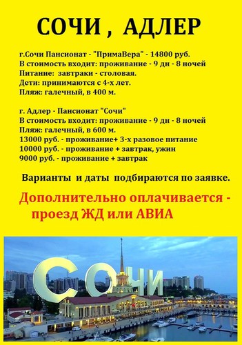 МЫ РАБОТАЕМ ДЛЯ ВАС И ПРЕДЛАГАЕМ АВТОБУСНЫЕ,Ж/Д ,АВИА ТУРЫ НА НАШИ ЮГА И КРЫМ,А ТАК ЖЕ БЛИЖНЕЕ И ДАЛЬНЕЕ ЗАРУБЕЖЬЕ Эксклюзивные туры Горящие путевки Пакетные туры Пляжный и экзотический отдых Экскурсионный отдых по России , Европе , Африке и Азии Горные лыжи , зимний и лечебный отдых А так же оказываем помощь при оформлении визы и осуществляем продажу АВИА и ЖД билетов Мы ждем Вас по адресу: г .Александров ул. Ленина д .66/1 Остановка Площадь , аптека 2й этаж-вход со двора Телефоны:8(49244)38474 или 910 777 5985