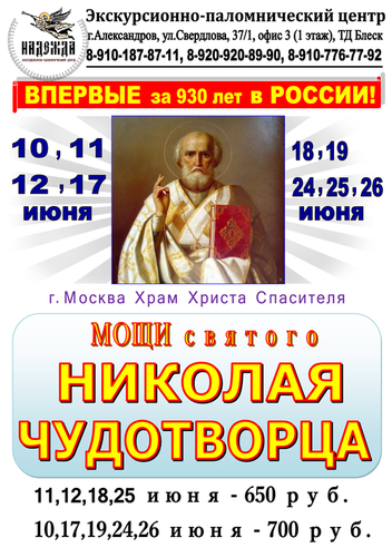 Внимание! По просьбам появились дополнительные даты к мощам Николая Чудотворца.