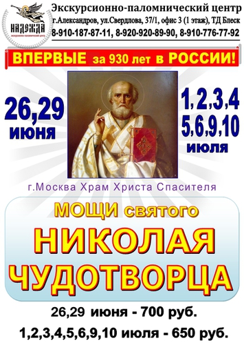 Важное событие для верующих!  Впервые за 930 лет  мощи Николая Чудотворца в России!