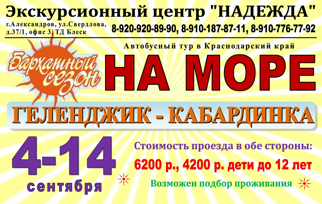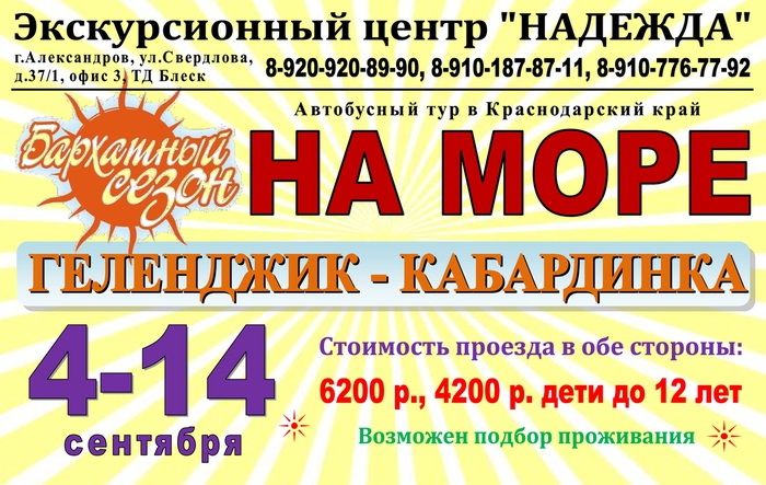Геленджик - Кабардинка 4-14 сентября (автобусный тур)