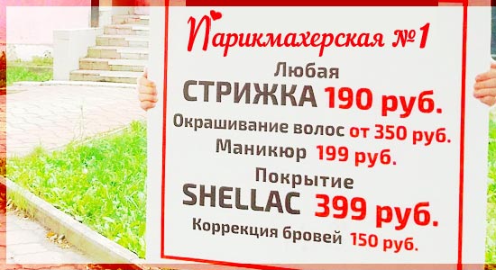 «занимаясь любимым делом и создавая красоту, мы стремимся сделать ее доступной — чтобы счастливых, красивых и уверенных в себе людей становилось все больше и больше. В нашей недорогой уютной парикмахерской, вы можете привести себя в порядок, немного расслабиться и отвлечься от повседневных хлопот. Наши клиенты не только не переплачивают, а рационально расходуют семейный бюджет. Например: любая стрижка — 190 рублей, а маникюр всего 199 рублей»