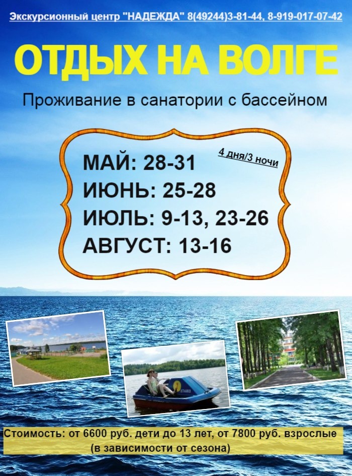 Лето 2020. Отдых на Волге с проживанием в санатории