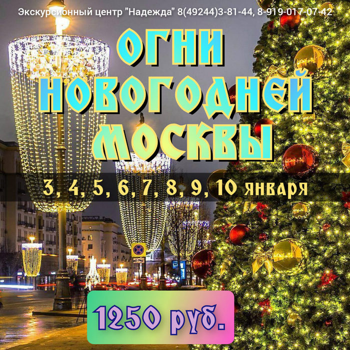 Во время экскурсионного тура Вы увидите всю красоту новогодней столицы России, великолепие московских елок, пестрящих игрушками и мерцающими гирляндами, а также сможете лицезреть неотразимость иллюминации.