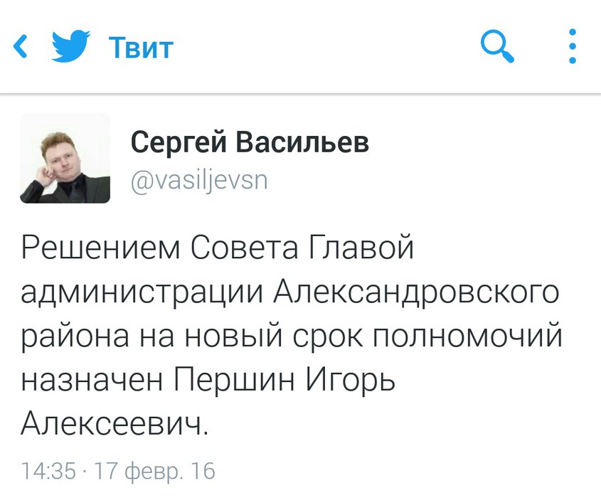 Игорь Першин вновь назначен Главой администрации Александровского района