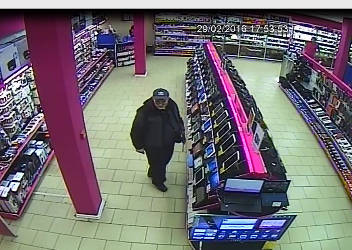 Подозревается: мужчина на вид около 50 лет, плотного телосложения, волосы седые. Был одет в темную куртку, темные штаны, ботинки черного цвета, на голове – бейсболка с козырьком темно-синего цвета и логотипом «Adidas» белого цвета. При себе имел мужскую сумку черного цвета, одетую через плечо.