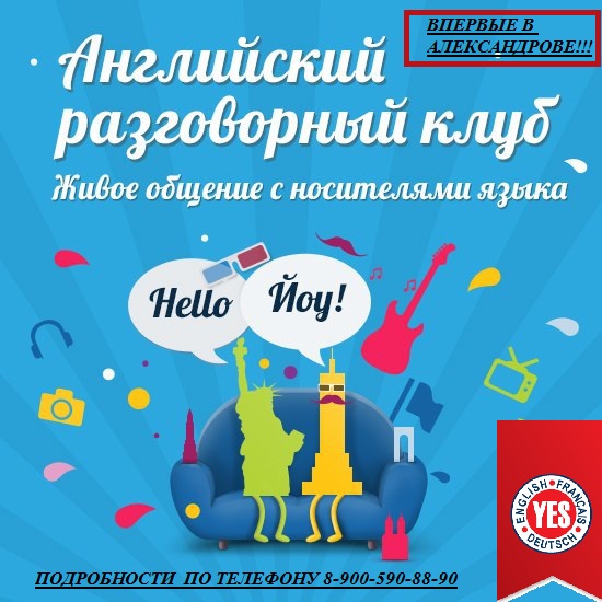 Впервые в Александрове!!! Английский разговорный клуб с носителем языка в Центре иностранных языков "YES"!!!!!! Присоединяйся!!!!!