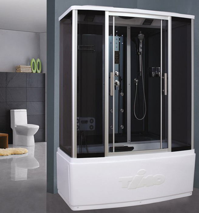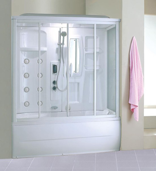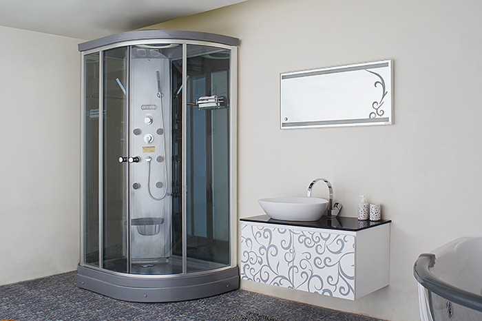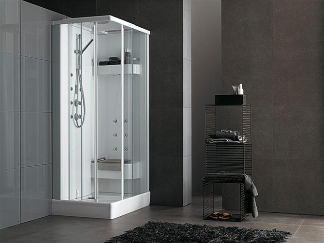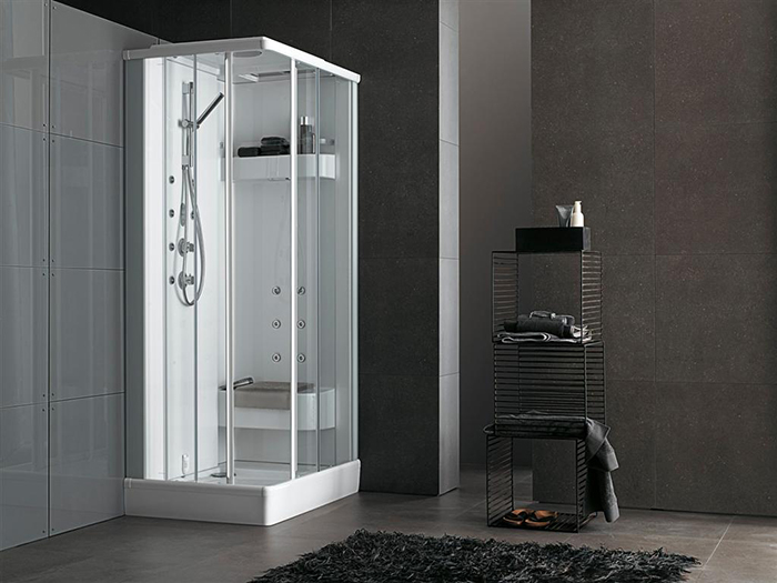 По форме кабины могут быть угловые, асимметричные, прямоугольные. Габариты: от 80×80 см до 90×90 см (асимметричной модели 110×80), максимальная высота 220 см. Часть кабин снабжена крышей (куполом), поэтому нужную высоту подбирают индивидуально. Некоторые модели оборудованы задней зеркальной стенкой, имеют сиденье. Смесители изготовлены из латуни, картриджи керамические. Ручной душ-лейка на гибком шланге с регулируемым креплением и верхний тропический душ.