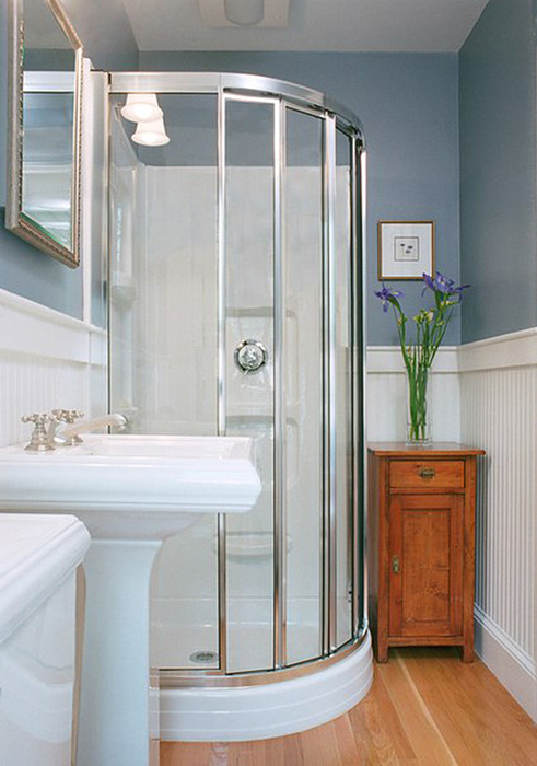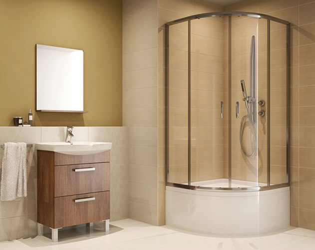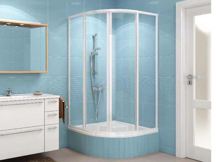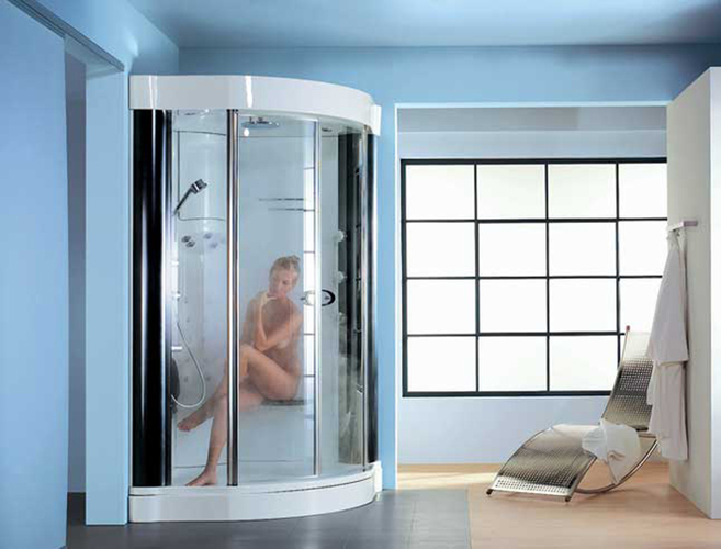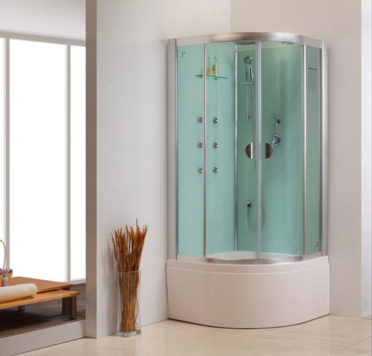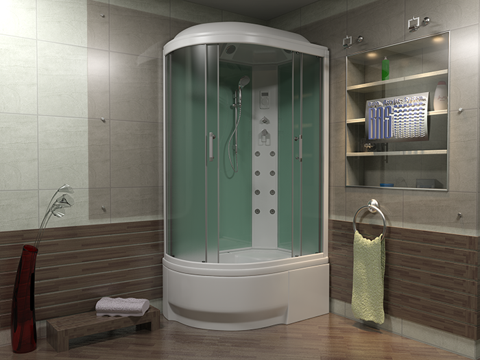 Стекло для корпуса и створок толщиной 5 мм закаливают по специальной безопасной технологии. Его прочность превосходит листовое стекло в 5 раз. Ему не страшны перепады температур при использовании парогенератора или контрастного душа. Выдержит оно и случайный удар средней силы. При более сильном воздействии, стекло покроется мелкой сеткой трещин. Чтобы стекло разбилось, нужен мощный удар. И даже тогда, оно рассыплется как автомобильное стекло: на осколки без зазубренных острых краев. Цвет стекла матовый, прозрачный, тонированный или с голубоватым оттенком.