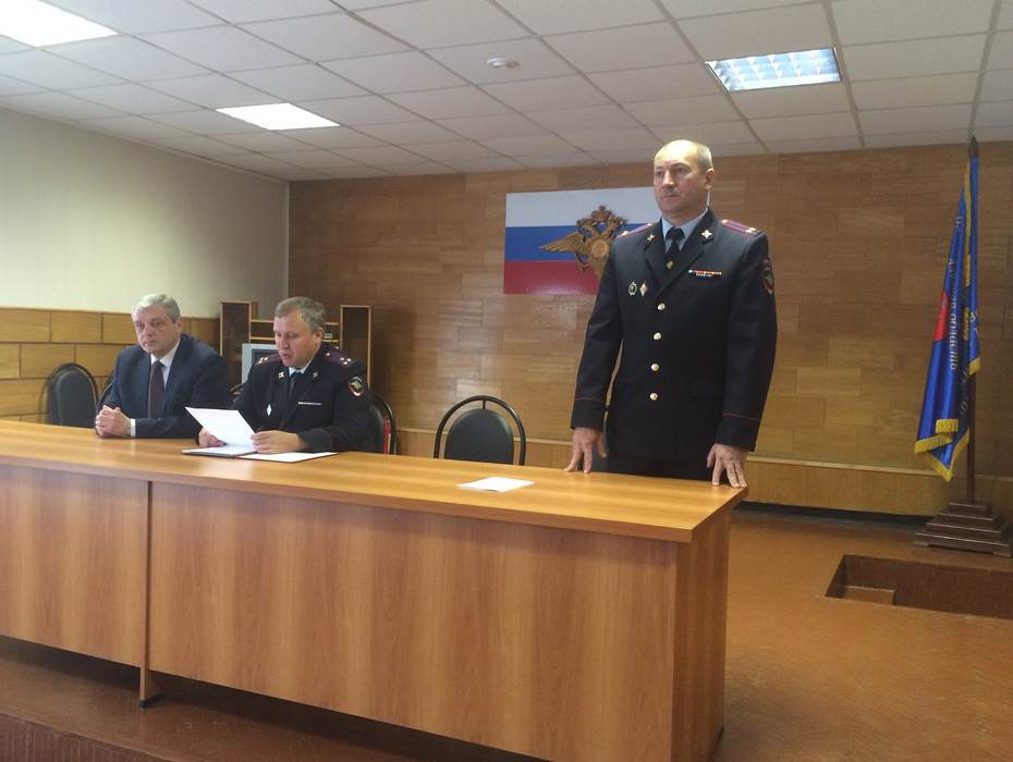 16 мая заместитель начальника полиции УМВД России по Владимирской области полковник полиции Валерий Саржин и заместитель начальника управления по работе с личным составом регионального УМВД полковник внутренней службы Павел Алексахин представили личному составу временно исполняющего обязанности начальника Александровского ОМВД подполковника полиции Виталия Макарова.