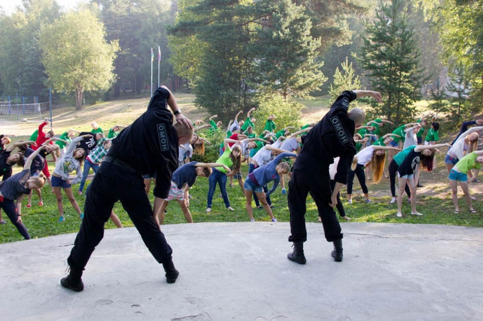 Затем на спортивной площадке учебного заведения полицейские провели для детей утреннюю зарядку. После разминки ребятам были продемонстрированы способы уклонения от ударов, а также коммуникативные техники предотвращения конфликтных ситуаций. Дети, разбившись по парам, с интересом отрабатывали новые навыки.