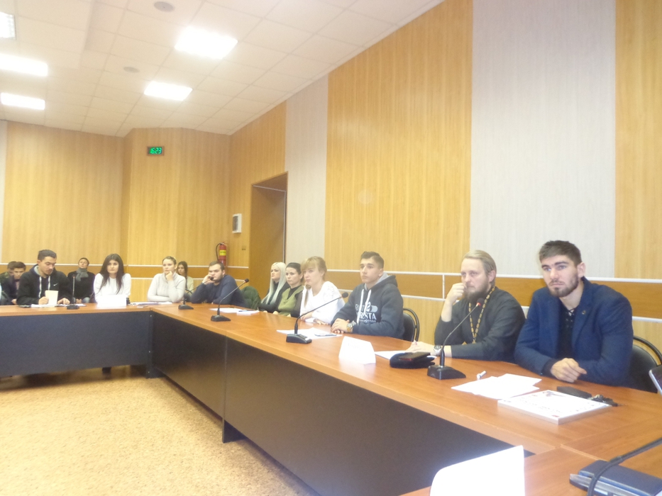 Шел разговор о сотрудничестве с Епархиальным отделом по делам молодежи Александровской и Юрьев-Польской епархии РПЦ: о прошедшем в летний период молодежном форуме в селе Лыково Юрьев-Польского района, об участии молодежи в Епархиальных рождественских чтениях, о проведении в рамках чтений на базе ФОКа «Олимп» 6 секции «Молодежные объединения и Церковь» «За здоровый образ жизни», в работе которой приняли участие военно-патриотические объединения и клубы Александровского, Киржачского, Кольчугинского, Петушинского, Юрьев-Польского районов, которые представили навыки и мастерство военного и спортивного искусства в своих показательных выступлениях и в «визитных карточках». В этом вопросе лидерство было за организатором этих мероприятий, заместителем председателя Совета молодежных организаций при Главе администрации Дмитриевым Андреем. По теме: «Об участии молодежи Александровского района в Международном спортивном форуме «Россия – спортивная Держава» выступил Тимофеев Дмитрий, «Об участии молодежи Александровского района во IIМеждународном Православном Студенческом форуме – 2016» выступил Дмитриев Андрей. Одним из основных вопросов было проведение муниципального этапа областного конкурса «Молодые лидеры Владимирского края». Александровский район на областном конкурсе «Молодые лидеры Владимирского края» будут защищать победители конкурса Белокопытова Аня, участник молодежного объединения юных журналистов «Микс», победительница конкурса «Ученик. Лидер - 2016» и Тимофеев Дмитрий, председатель Совета молодежных организаций при Главе администрации Александровского района, проект «РУССКИЙ ВИТЯЗЬ».
