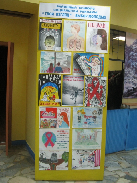 Конкурс социальной рекламы «Твой взгляд» прошел в рамках декады профилактики правонарушений в ноябре 2016 года среди учащихся общеобразовательных школ, участников клубных формирований, кружков ИЗО учреждений культуры района и студентов колледжей. Задача конкурса – акцентировать внимание подростков к проблеме СПИДа, предоставить им возможность творчески выразить свое понимание и отношение к пагубным привычкам и негативным проблемам в молодежной среде. В конкурсе приняли участие более сорока человек. Пятнадцать работ были признаны лучшими, и их авторы получили дипломы и памятные сувениры – кружки с логотипом конкурса «Твой взгляд». Пять из них были признаны победителями. Вот их авторы: Носарева Карина, Стахиева Дарья и Галибина Екатерина – студия изобразительного искусства ДК «Юбилейный»; Маслова Дарья – ИЗО-студия Киноконцертного зала «Южный», Зайцева Ксения - МБОУ СОШ № 1. Их работы были размещены на лицевой стороне карманных календарей на 2017 год, выпущенных, согласно положению, по итогам конкурса и растиражированных типографией.