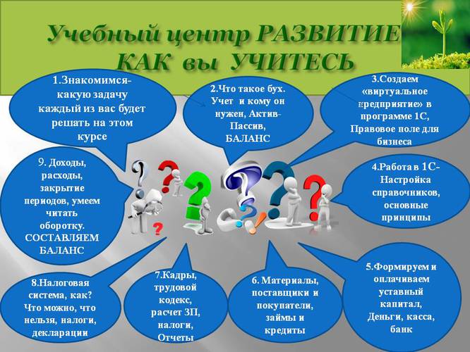 - Ваш личный результат после курса – от «0» до -знание теории бухгалтерского учета, понимание налоговой системы, умение работать в программе «1С- Бухгалтерия 8.3», самостоятельное составление и чтение бухгалтерского баланса.