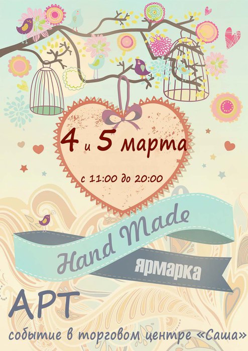 Приглашаем на ART-событие весны Hand Made Ярмарку 4-5 марта ТРЦ "Саша"
