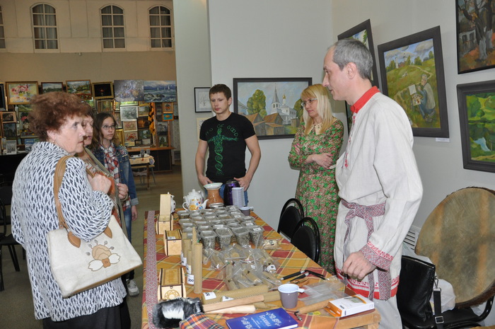 На фото: Маргарита Бояршинова – авторская кукла «Маргарита» (с. Флорищи, Кольчугинского района); Андрей Фролов – всевозможные травные чаи, свечи из воска (г. Александров); гости музея и участники фотоконкурса.