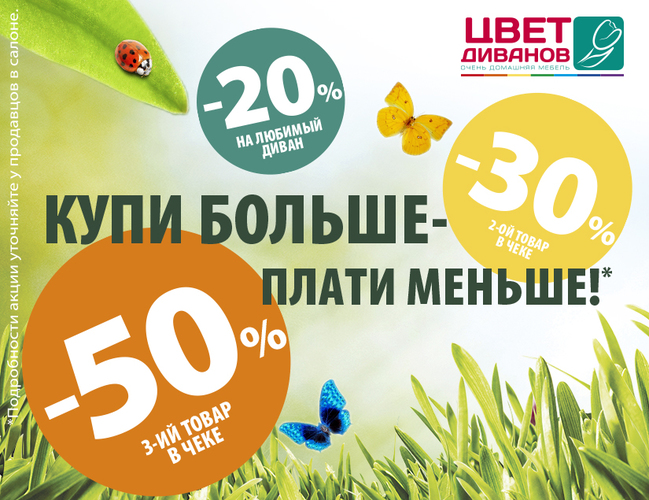 Акция: «Купи больше – плати меньше» в сети салонов Цвет Диванов ТРЦ "Саша"