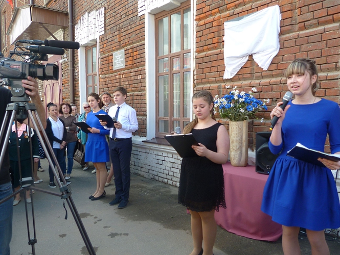 Знаменательно, что в здании, на котором доска установлена, в годы Великой Отечественной войны располагались военные госпитали, и дети помогали ухаживать за ранеными, пели песни, читали стихи, писали под диктовку письма их родным и близким. Сейчас здесь находится Центр дополнительного образования «ДАР».