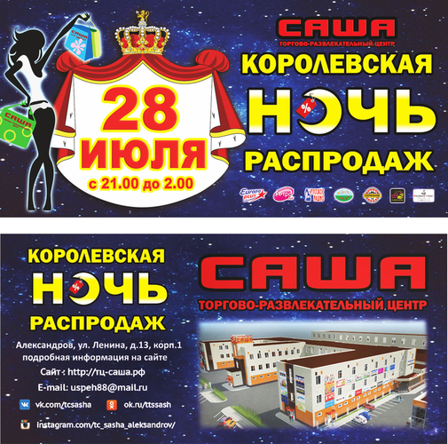 АКЦИЯ "КОРОЛЕВСКАЯ НОЧЬ РАСПРОДАЖ" в ТРЦ "Саша"