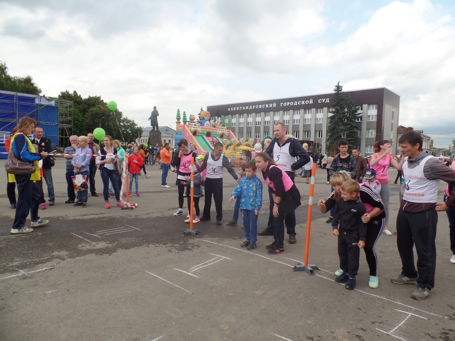26 августа, в День города Александрова на Советской площади состоялись традиционные спортивные соревнования «Папа, мама, я- спортивная семья».На этот раз в соревнованиях участвовали семейные команды дошкольных учреждений г.Александрова (ДОУ №№2,6,10,15,23 26,27).