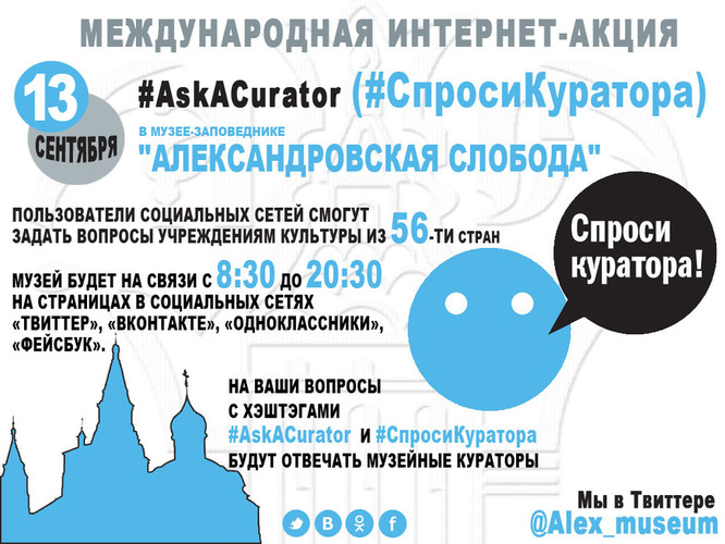 13 сентября музей-заповедник «Александровская слобода» впервые участвует в ежегодной международной интернет-акции #AskACurator («Спроси куратора»).