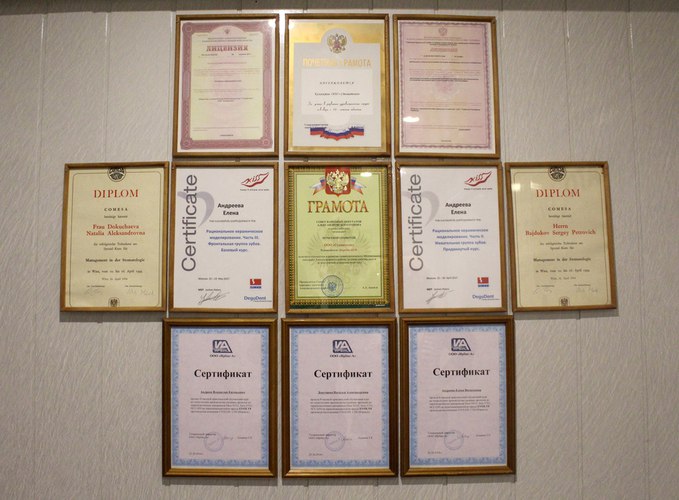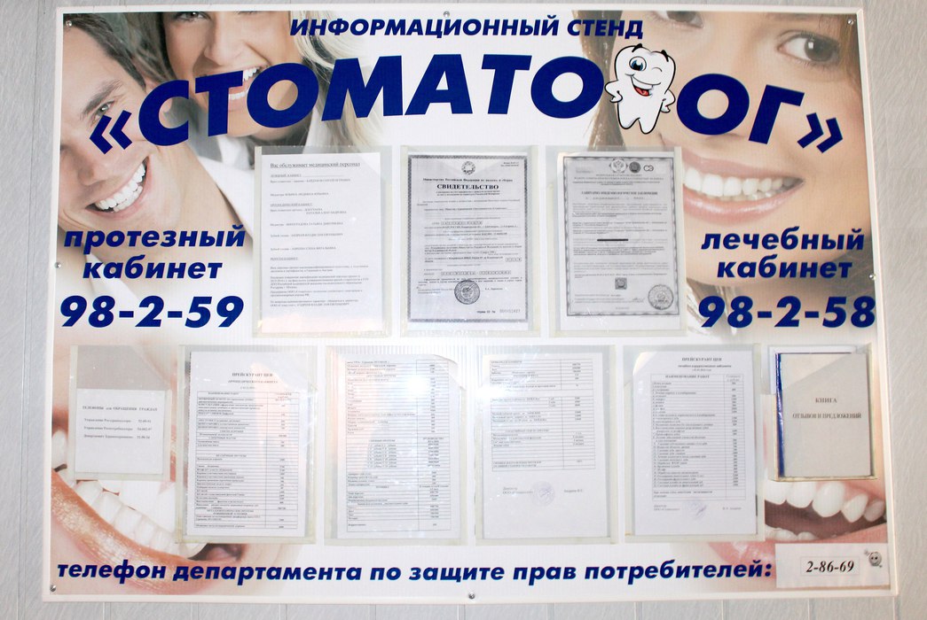 Приходите и убедитесь, в ООО «Стоматолог» вы будете уверены в качестве предоставленных услуг на все 100%, в подтверждении этому огромное количество грамот и постоянные  клиенты. Да, это действительно так. Желаете проверить? Вперёд, на бесплатную консультацию в ООО «Стоматолог».