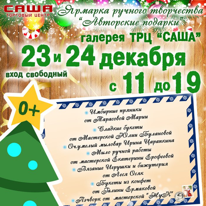 Приглашаем за авторскими подарками 23-24 декабря в ТРЦ "САША"