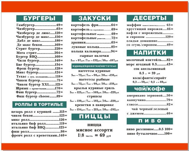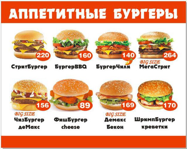 В кафе "Бургер Стрит" новое меню (ТРЦ "САША" 3й этаж)