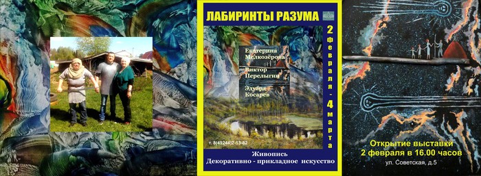 Выставка «Лабиринты разума» объединила трех художников, чья творческая манера совершенно не похожа между собой. Это Екатерина Мелкозерова, Эдуард Косарев и Виктор Перелыгин.
