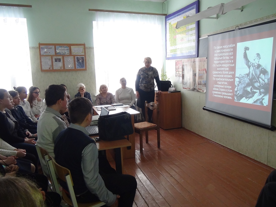 19 февраля Александр Анисимов побывал в Долматовской школе № 16. Темами встречи стали Сталинградская битва и годовщина вывода советских войск из Афганистана Ребята серьезно подготовились к уроку – оформили стенды, подготовили стихи, кроссворды и презентации. Почетный гость рассказал о героях Сталинграда, о доблести и мужестве, о том, как велико может быть чувство верности своему Отечеству.
