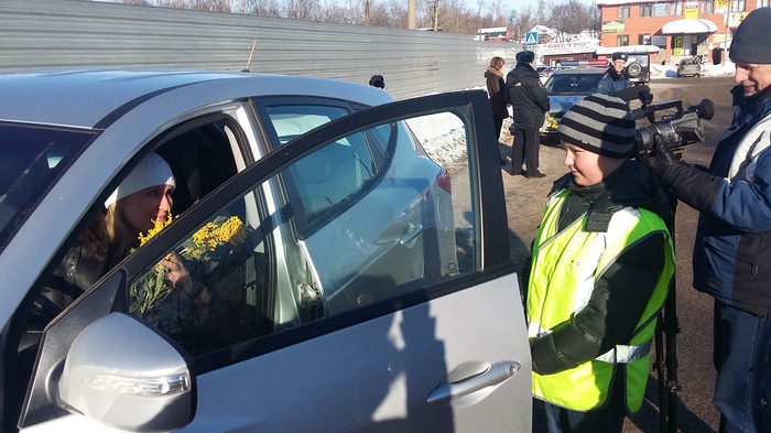 В преддверии Международного женского дня ребята из отряда ЮИД школы № 4 г. Александрова, совместно с полицейскими ОМВД России по Александровскому району, поздравляли женщин и девушек за рулем, в том числе кандидаток в водители, обучающихся в автошколах. Юные инспектора движения вручали автоледи цветы, желали доброй дороги и весеннего настроения.