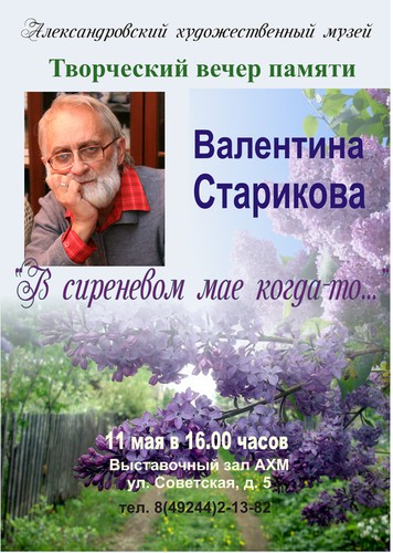 11 мая в 16:00 Александровский художественный музей приглашает на вечер памяти Валентина Ивановича Старикова.