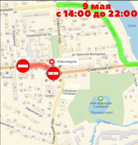 - с 9.00 от Советской площади до Комсомольской площади для организации шествия участников Всероссийской акции «Бессмертный полк»;