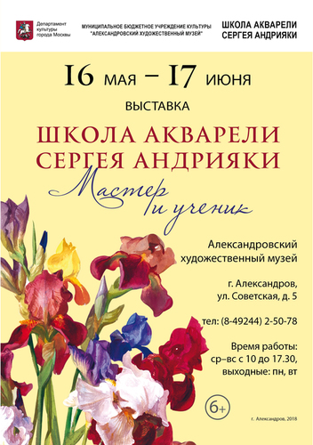 Приглашаем посетить выставку Школы акварели Сергея Андрияки "Мастер и ученик". Торжественное открытие состоится 18 мая в 16:00