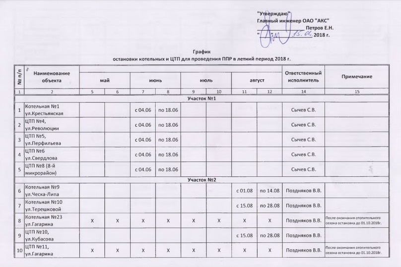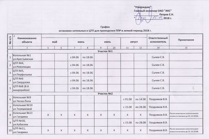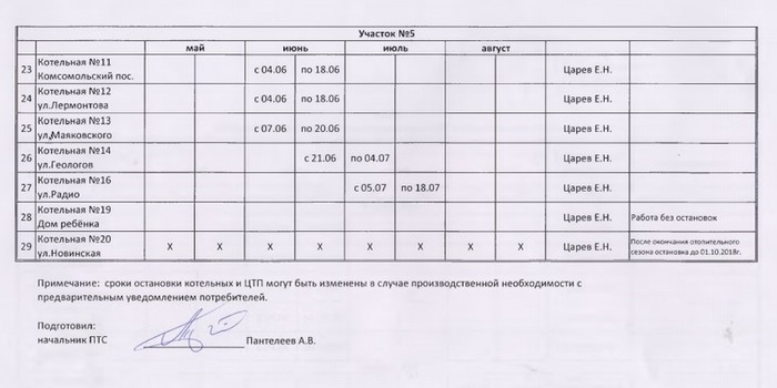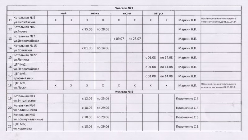 График остановки котельных и ЦТП для проведения ППР в летний период 2018 г.
