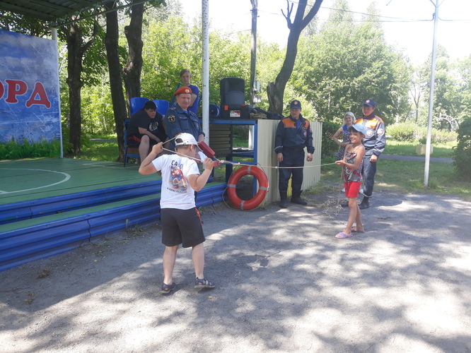Гости напомнили детям правила безопасного поведения на воде, рассказали, как оказать помощь тонущему человеку, обратили внимание ребят на то, что купаться можно только в специально разрешённых местах и в воде следует находиться не более 10-15 минут. Нельзя переоценивать свои силы, и купаться ходить нужно дружной компанией под присмотром взрослых, чтобы суметь прийти друг другу на помощь.