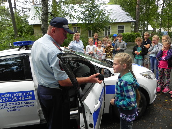 18 июля сотрудники Госавтоинспекции и отдела по контролю за оборотом наркотиков ОМВД России по Александровскому району, наркологического диспансерного отделения, комиссией по делам несовершеннолетних и защите их прав провели интеллектуальную игру «БРЕЙН – РИНГ» для детей, отдыхающих в детских оздоровительных лагерях «Рекорд» и «Солнечный».