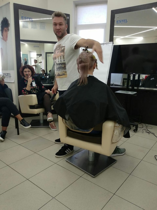 Стилисты центра красоты ВОЯЖ посетили очередной обучающий семинар в академии ESTEL. Предметом изучения на этот раз стали новые техники и модные тенденции в мужских стрижках. Препадаватель курса :