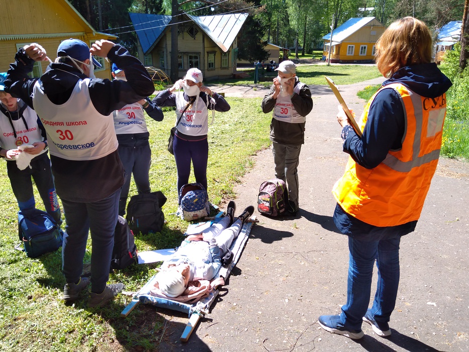 На старт «маршрута выживания» вышли 13 команд по 6 человек в каждой, из них не менее 2 девушек. У каждой команды необходимый для прохождения «набор для выживания». В рюкзаке аптечка, компас, сотовый телефон, веревки, накидка от дождя, часы, карта с маршрутом. Первым заданием для ребят стали теоретические вопросы по оказанию доврачебной помощи, транспортировка пострадавшего на изготовленных из подручных средств носилках до следующего контрольного пункта, на котором предполагалась утечка химически опасных веществ. Используя подручные средства защиты, участники должны были показать свои действия в случае химического заражения местности хлором или аммиаком. Некоторые ребята, как на уроке, начинали вспоминать необходимые теоретические знания. Но были и команды, которые сразу переходили к действию, например, команда школы №1.